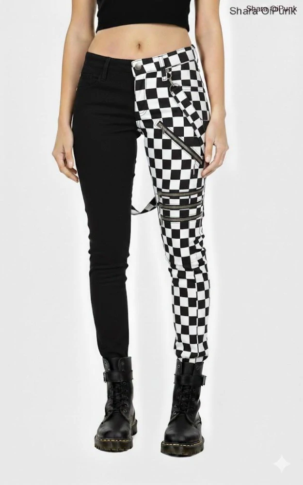 Punk dámské kalhoty - černá/bílá SKA/4 zipy/1 šle1 400,00 Kč/ ks1 157,02 Kč bez DPH