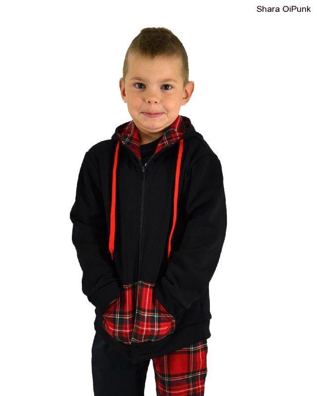 - Punk mikina na zip - černá/červené káro