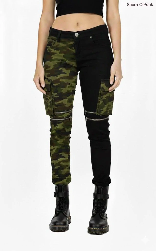 - Punk dámské kalhoty kapsáče - černá/masáč/4 zipy