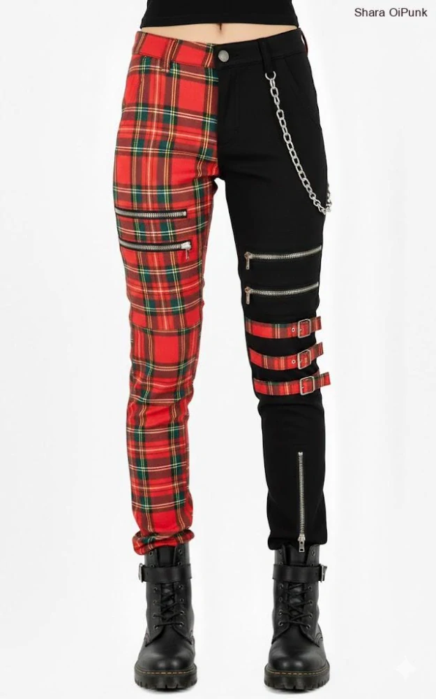 Punk dámské kalhoty - černá/červené káro /5 zipů/3 spony1 600,00 Kč/ ks1 322,31 Kč bez DPH