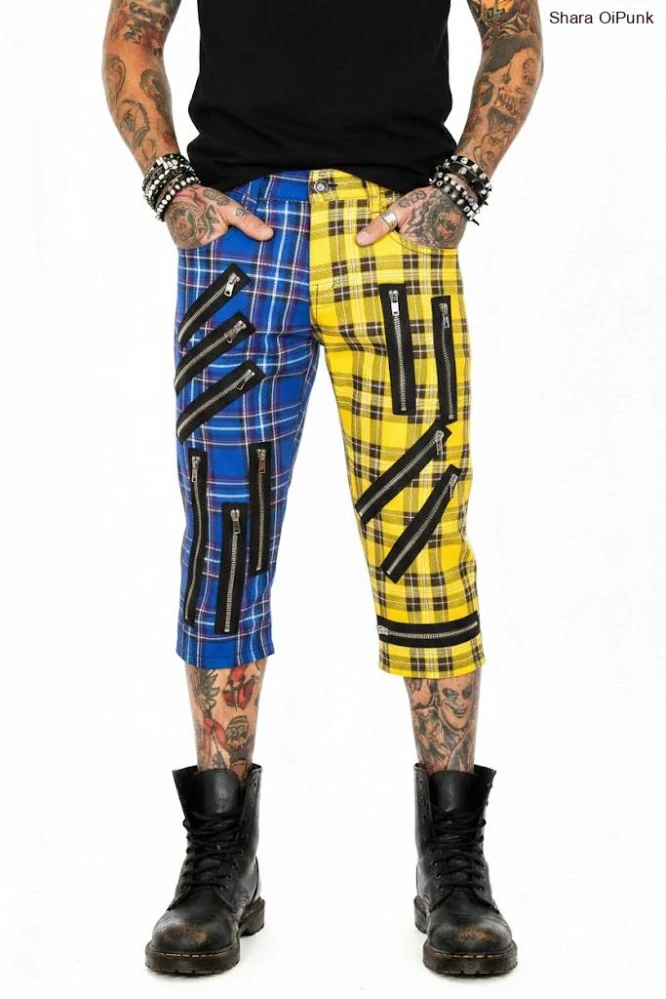 Punk kraťasy kapsáče - modré káro/žluté káro/11 zipů