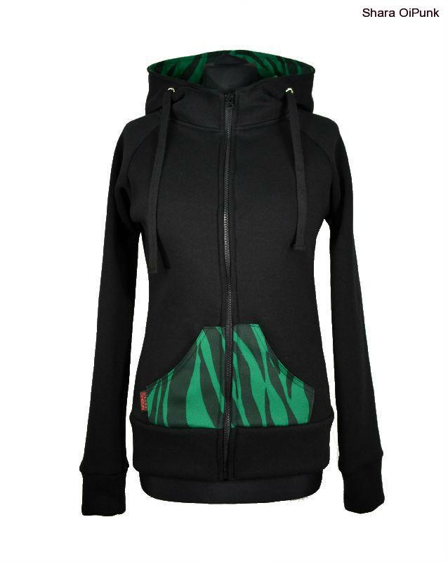 - Punk mikina na zip - černá/zelená zebra