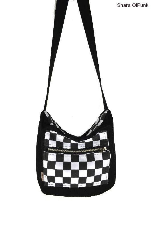 Punk taška černá s kapsou bílo černá SKA kostka