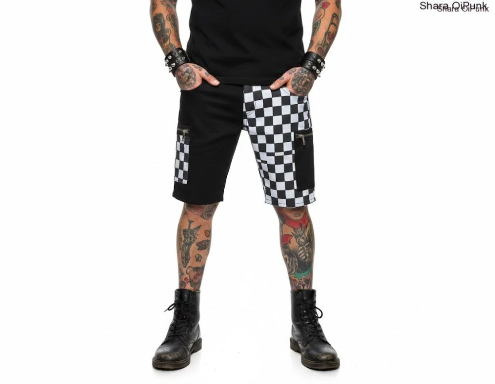 - Punk kraťasy kapsáče- černá/bílá SKA/2 zipy