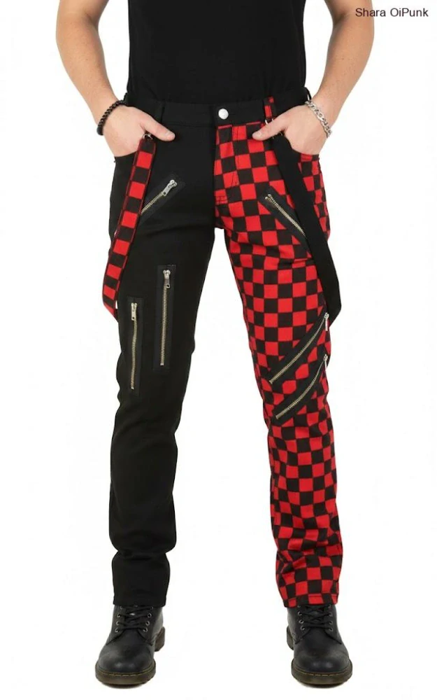 Punk pánské kalhoty - černá/černo červená SKA/6x zip/kšandy SKLADEM vel.M1 600,00 Kč/ ks1 322,31 Kč bez DPH