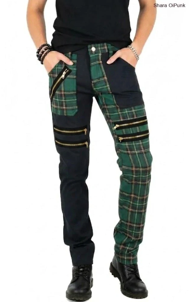 Punk pánské kalhoty - černá/zelené káro/5x zip1 400,00 Kč/ ks1 157,02 Kč bez DPH