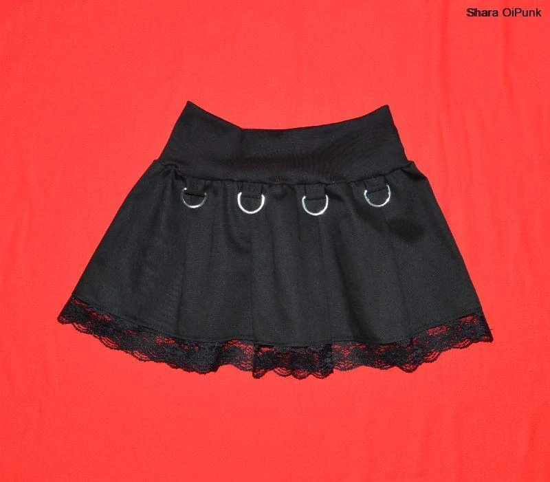 - Punk sukně lehce skládaná- černá/krajka/kruhy