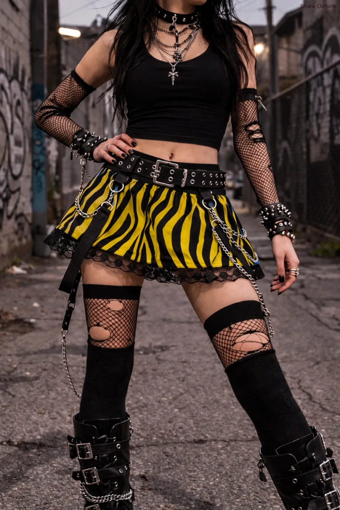 - Punk sukně lehce skládaná- žlutá zebra/krajka/šle